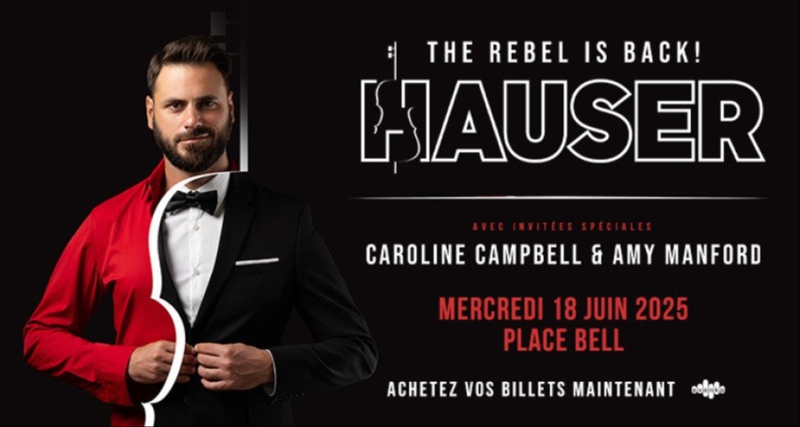 Du 26 mai au 1er juin 2025, notez deux indices différents diffusés sur la radio web de radioclassique.ca, remplissez le formulaire de participation radioclassique.ca au plus tard le 1er juin 23h45 et courez la chance de gagner l'une des 4 paires de billets pour le concert du violoncelliste HAUSER à la Place Bell de Laval, le mercredi 18 juin prochain!